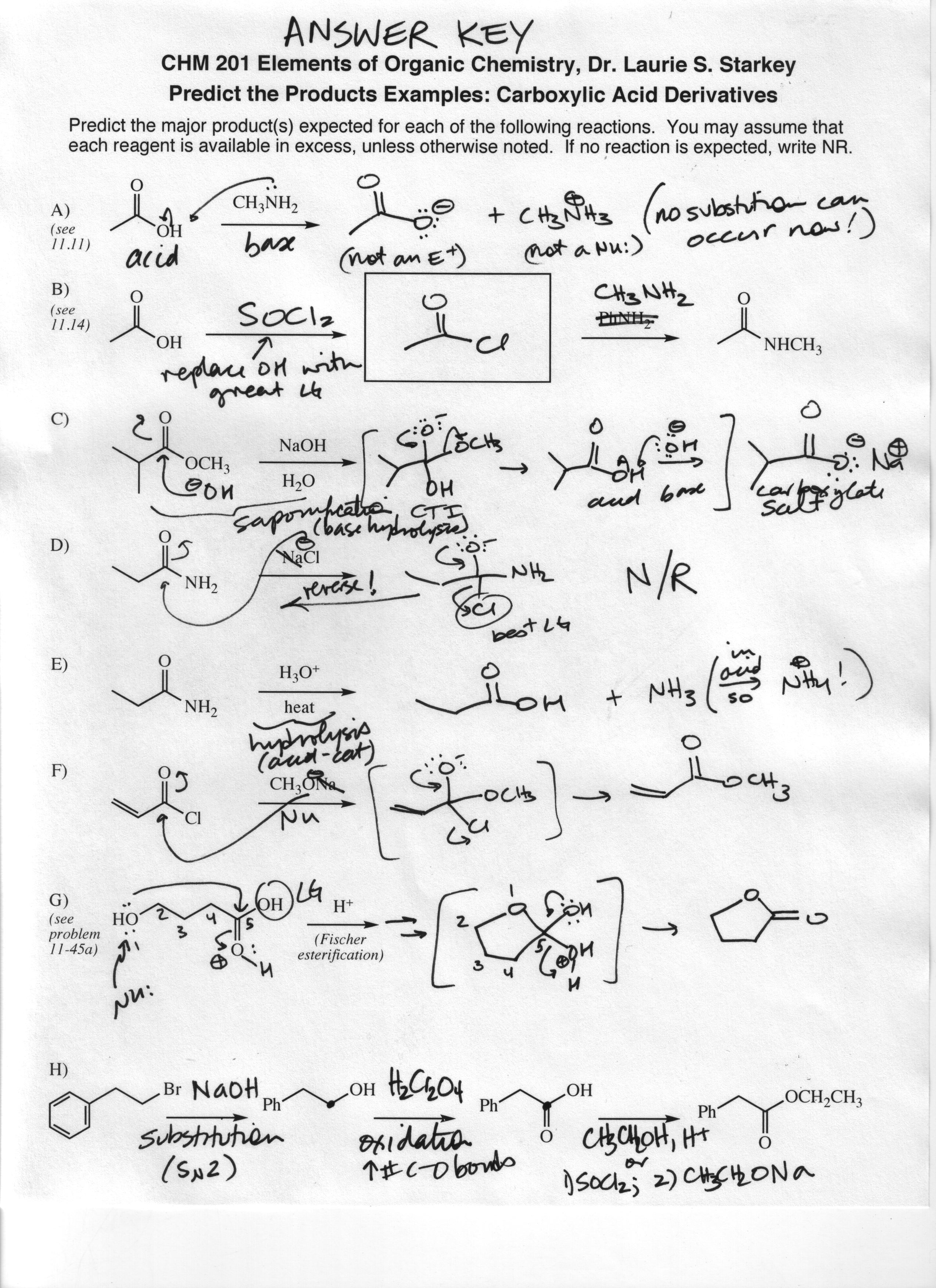 Carboxylic Acid Derivatives Predict the Product practice problems and answer key