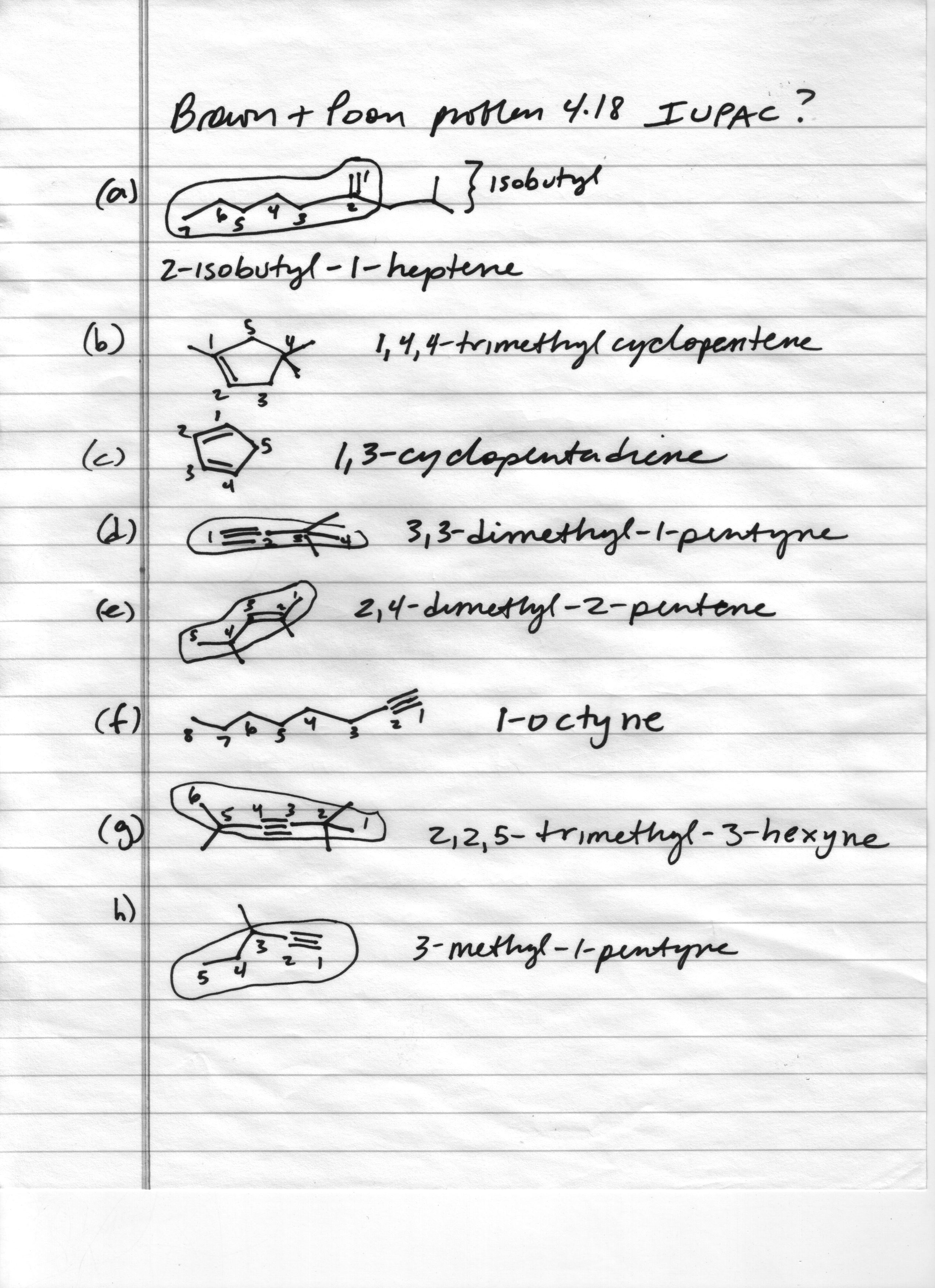 OLC week 5/6 suggested assignment: B&P textbook problems 4.18 (compare/discuss IUPAC names | key) and 5.57 (provide mechanism, explain, discuss)