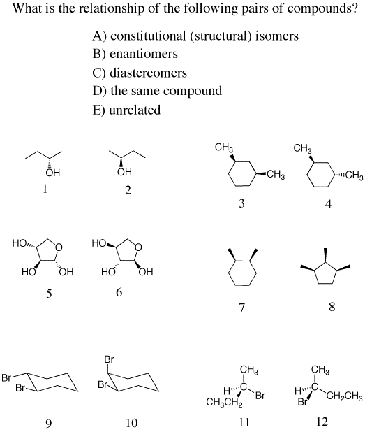 Stereochemistry practice (R/S, E/Z): Virtual Textbook (Reusch)
