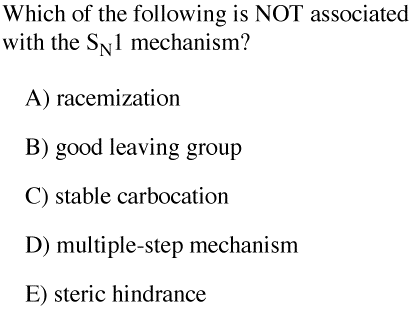 Chapter 7 Substitution Reactions of Alkyl Halides (RX) (sections 7.1 - 7.6 only, lecture handout): in-chapter problems 1-5, Quick Quiz (SKIP 4, 5, 7, 16, 19, 20) and odd end-of-chapter problems 9-35, 41ac, 43abef