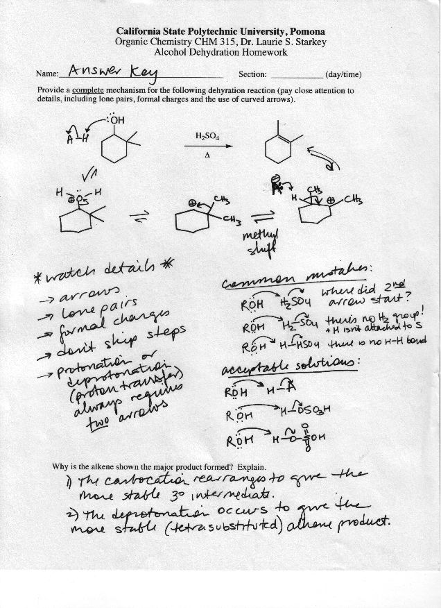 Dehydration Mechanism homework (due Thursday, 5/19) and answer key